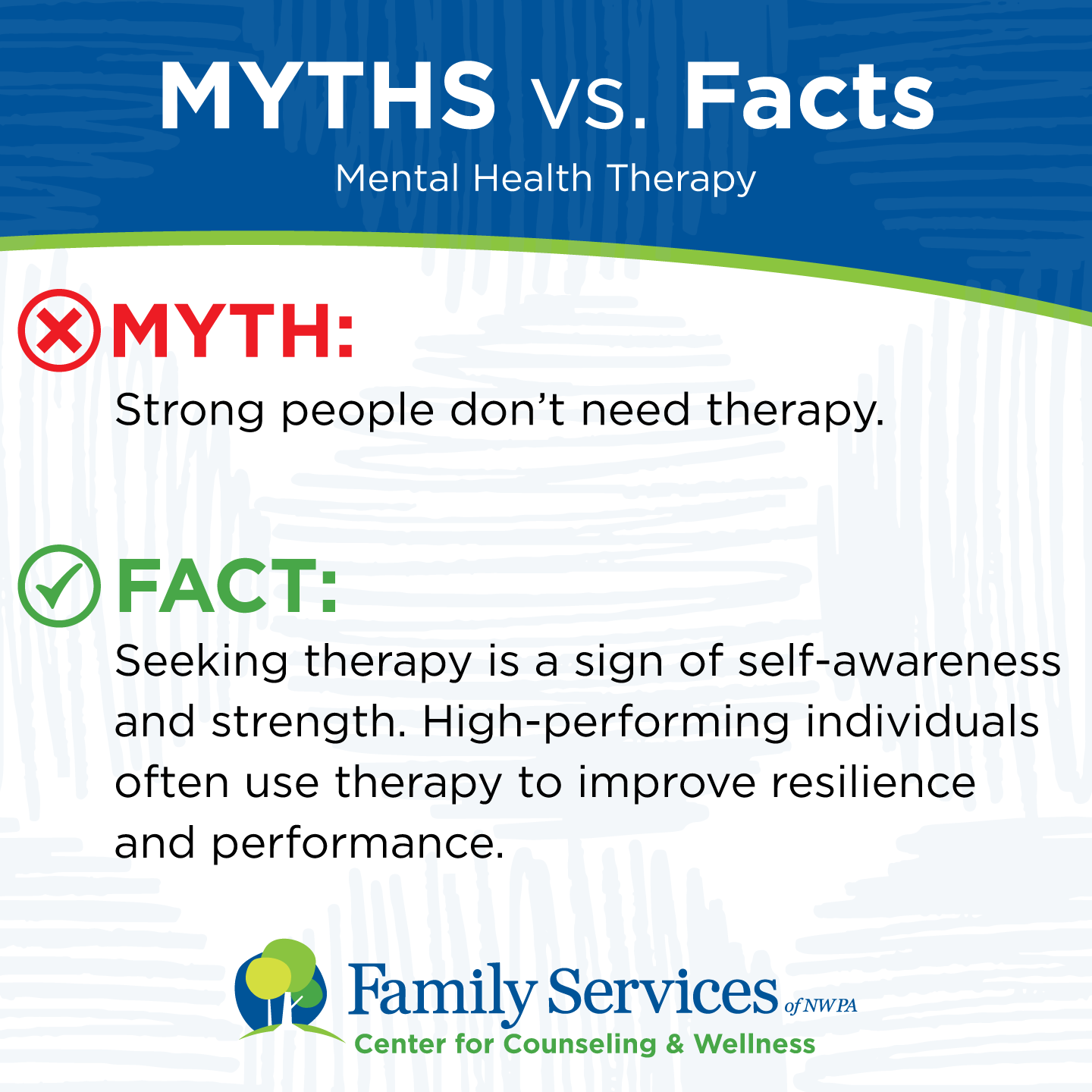 FACT: Seeking therapy is a sign of self-awareness and strength. High-performing individuals often use therapy to improve resilience and performance.