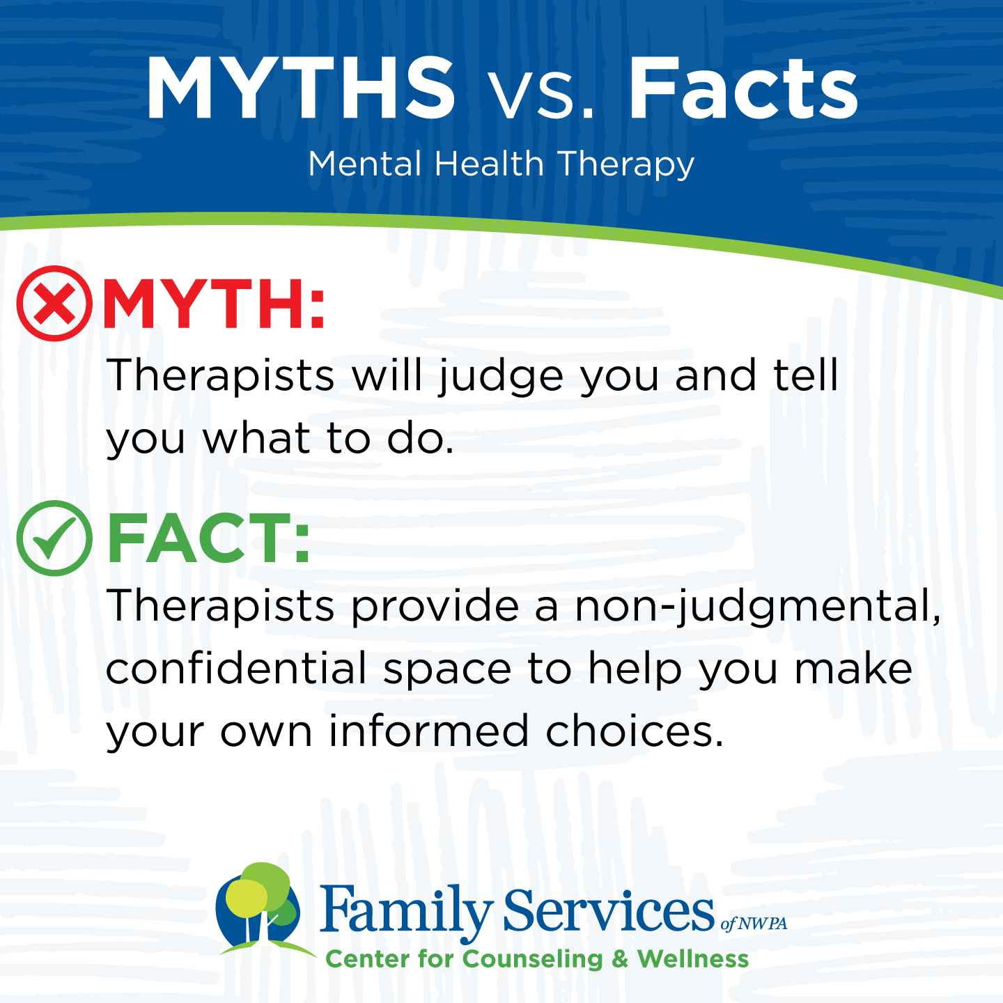 FACT: Therapists provide a non-judgmental, confidential space to help you make your own informed choices.