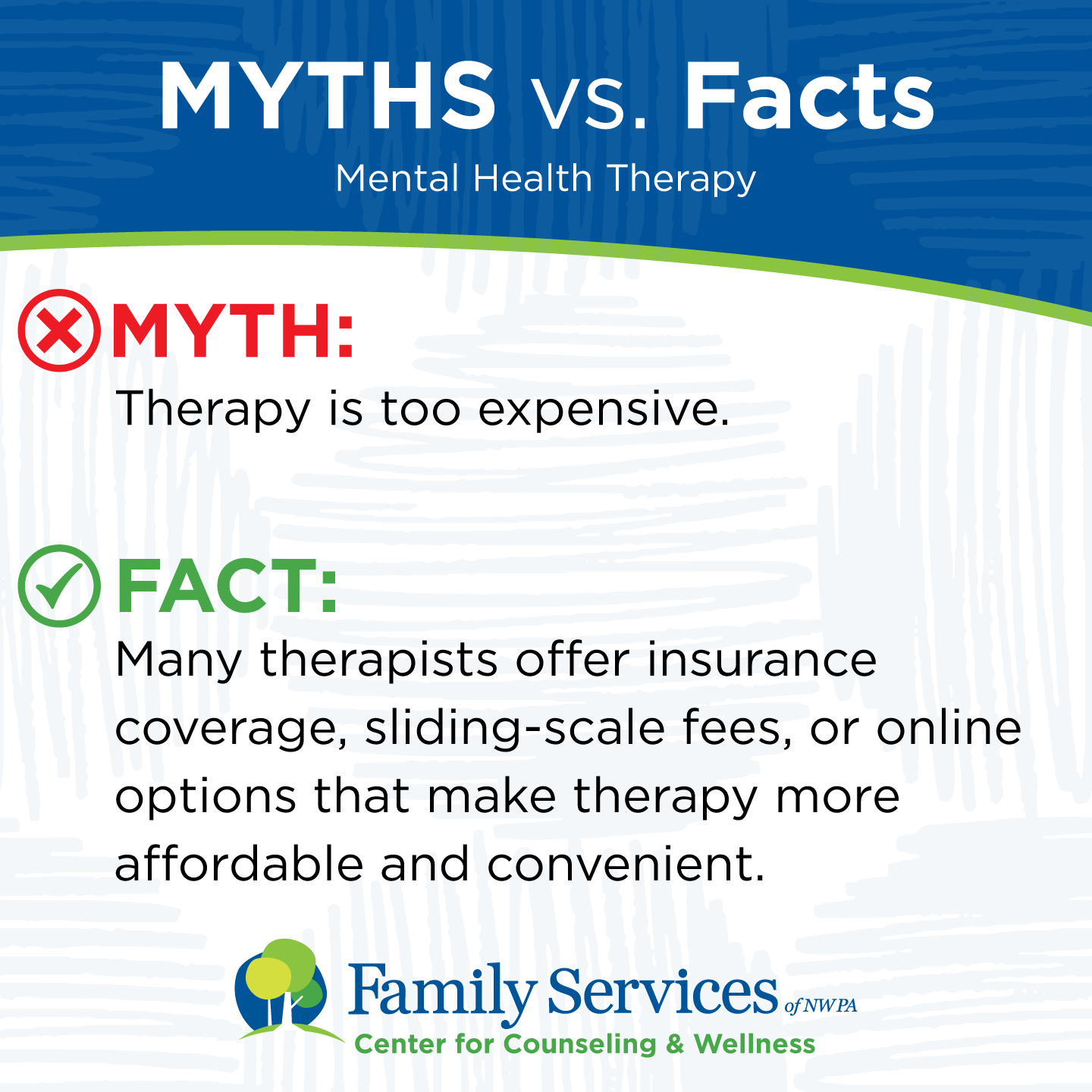 FACT: Many therapists offer insurance coverage, sliding-scale fees, or online options that make therapy more affordable and convenient.