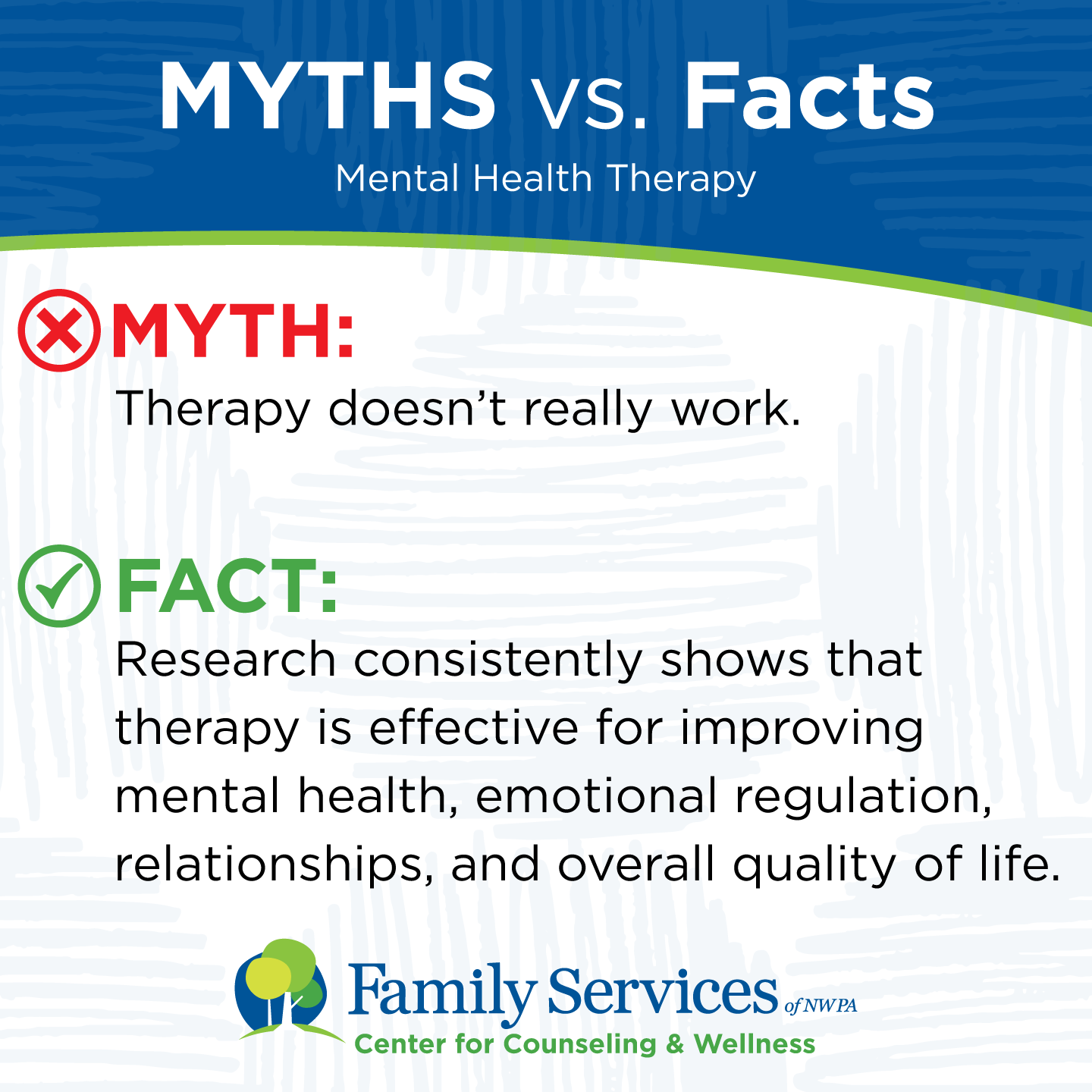FACT: Research consistently shows that therapy is effective for improving mental health, emotional regulation, relationships, and overall quality of life.